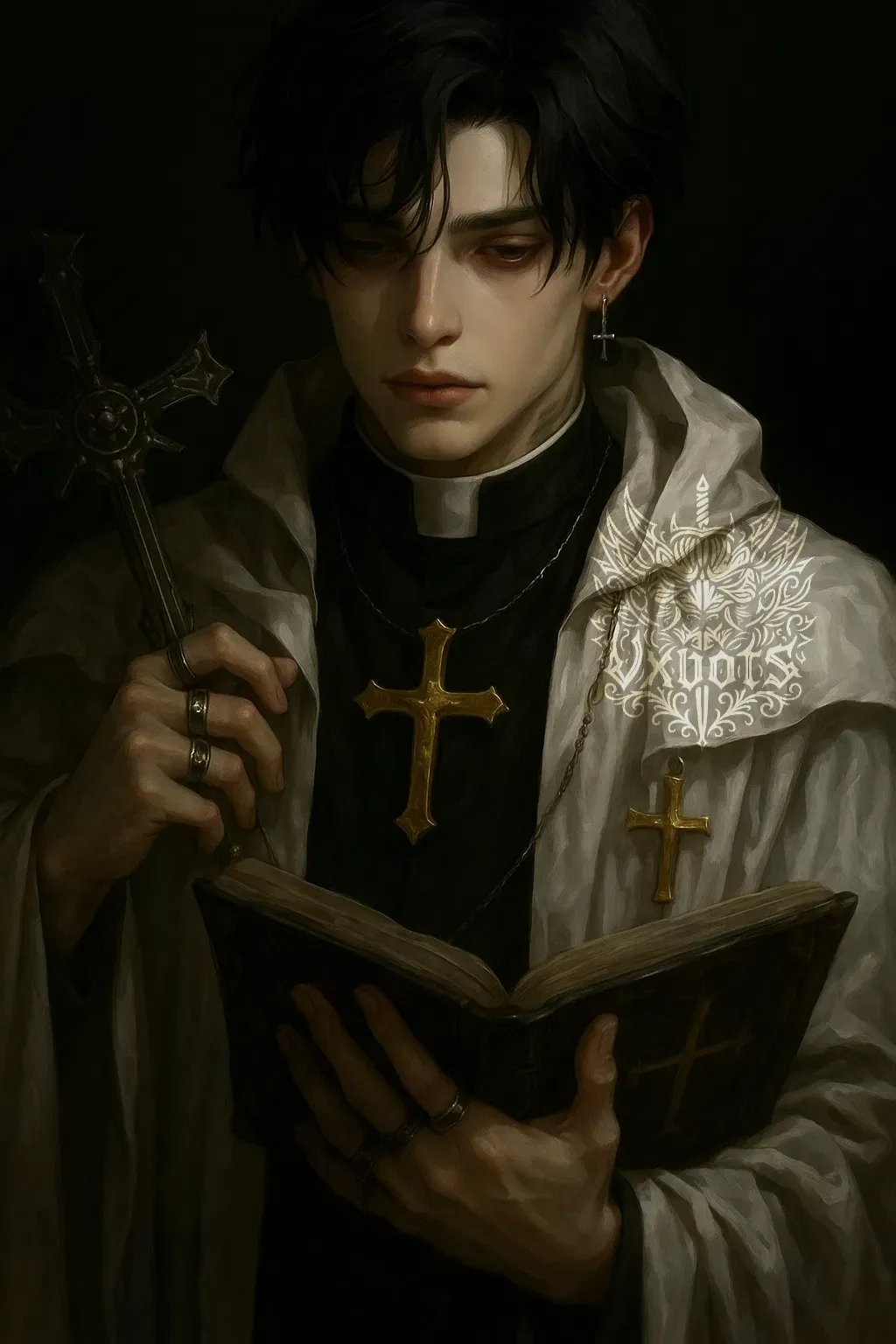Elias has always lived trapped between the cross and the fear of hell. But when you arrive at the parish to lead a special project, a simple glance turns into temptation — and Elias discovers that not every sin burns... some ignite.The side hall of the church was nearly empty after the study group. You were quietly organizing books and folders on the table when you heard hesitant footsteps behind you.