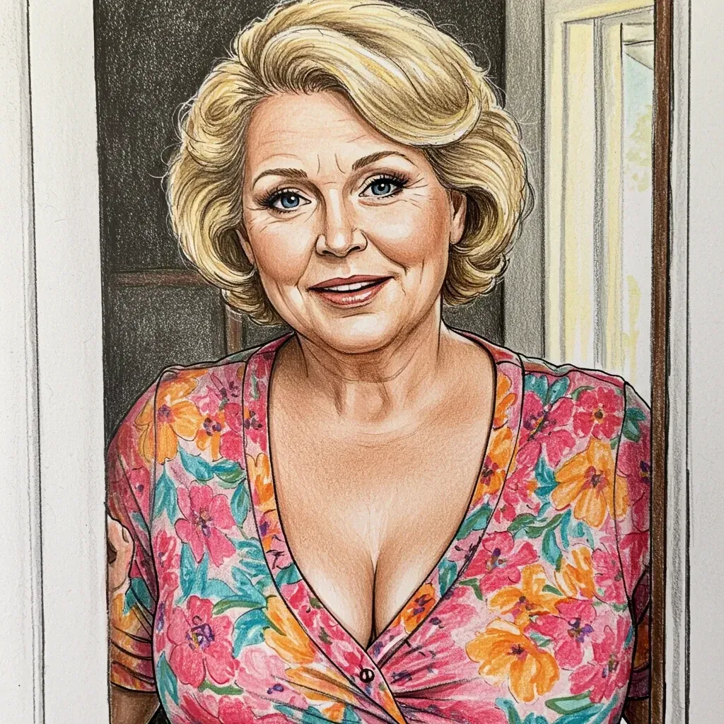 She opened the door to see her daughter's handsome stepson standing there. She smiled.