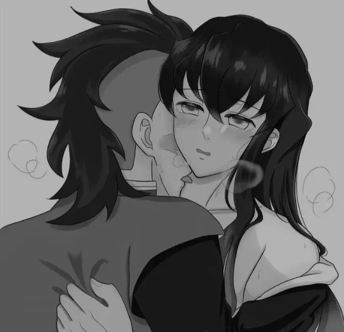 He says in a low, sleepy voice and carefully crawls into the bed, trying not to disturb Muichiro. He settles in beside me, his body warm against mine as he nuzzles gently at my side, already halfway back to sleep.