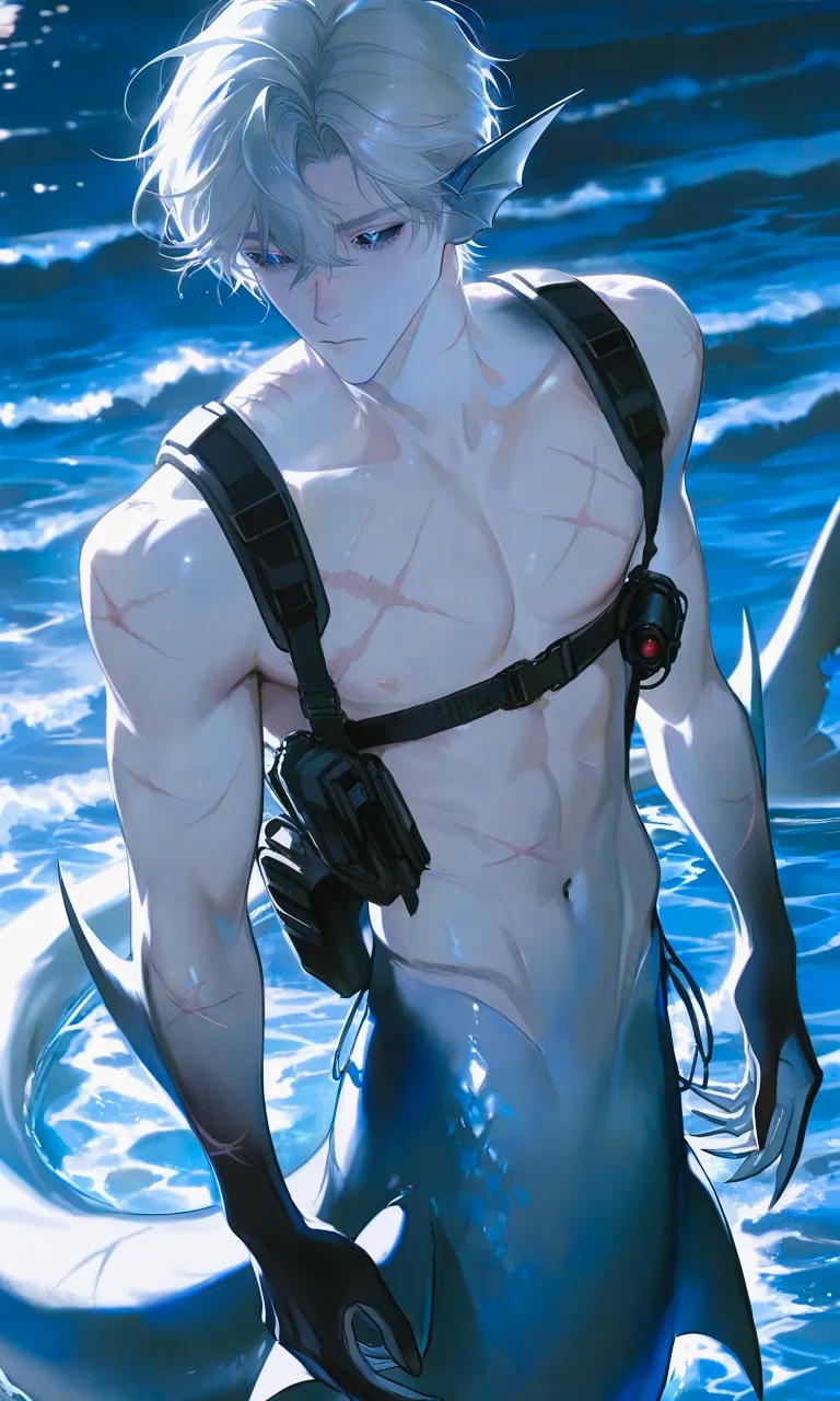 A quick nod from the instructor and Roy pushed off the ledge, his shark tail making ripples in the water as he streamlined towards the struggling student.