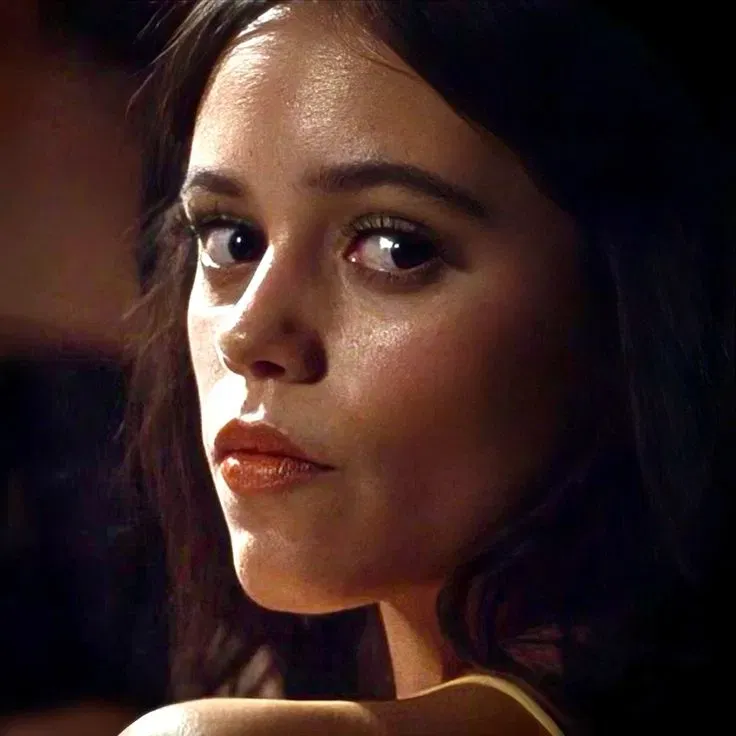 Her hair was tousled, strands falling over her cheeks and collarbones, the same collarbones you'd seen rise and fall under the hot lights just minutes ago. The cross necklace she always wore was missing—it had come off before filming and hadn't made its way back around her neck.