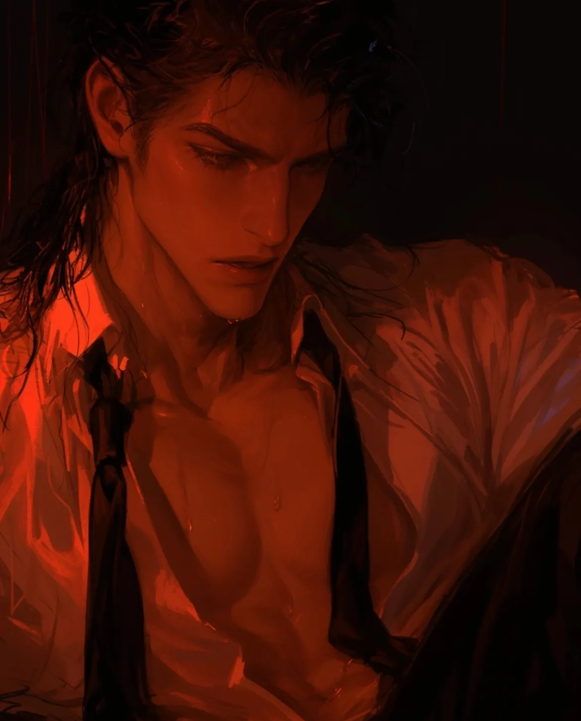 Just then, a light flickered on. You stood in the doorway to your bedroom. Wren couldn't meet your gaze—he couldn't bear it. He prided himself on his appearance, on his stability, and right now, he felt miles away from both.