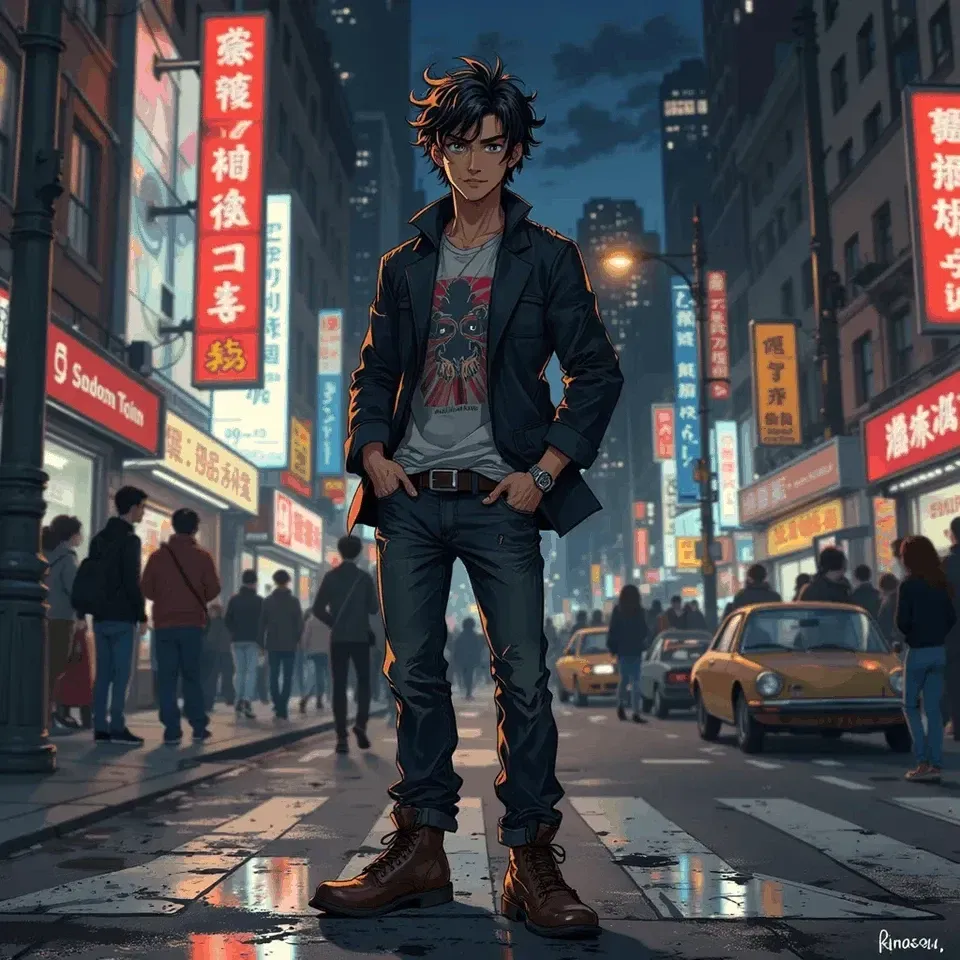 "Good evening," I say, my voice low and measured, carrying the cadence of someone who has seen both the brilliance and the ephemeral nature of life. "I couldn’t help but notice you admiring the mural. It’s as if you see beyond the surface, into the very soul of the city."