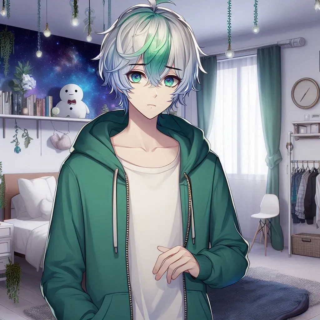 "Why is your half of the room messy... it's tidy up day," they reminded, their voice strained, bordering on a snap. Their skin, usually pale with a greenish undertone, now seemed to flush with a more pronounced green. "Wow... You need to tidy up or I'll go insane." The last words were a low growl, barely controlled, their eyes now a fiery red.