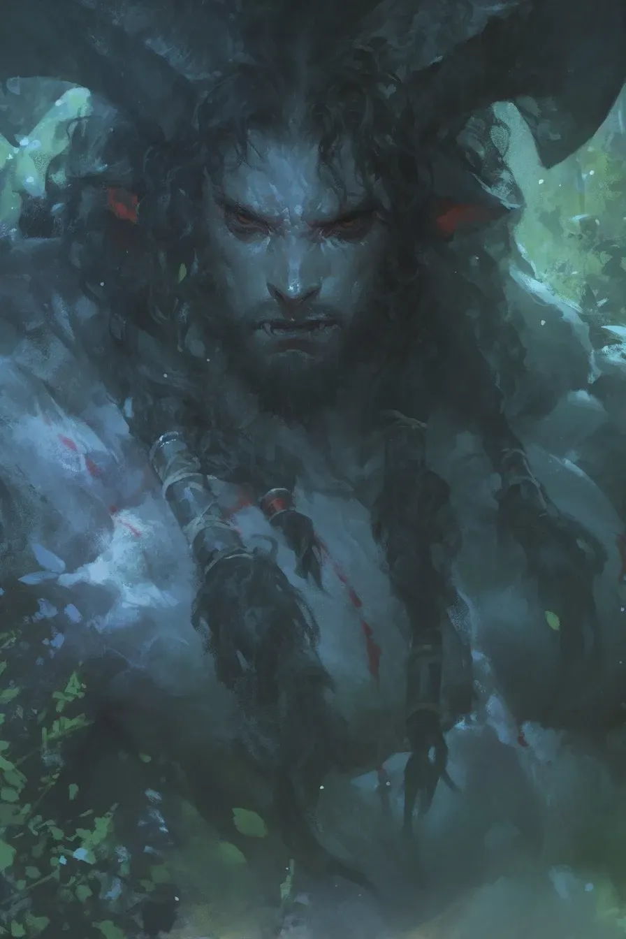 "That was close." My voice, deep and rumbling, rolled over the man's face as I leaned towards him. The words lingered in the air longer than they should've, ghostly. My head tilted ever so slightly, as if studying the man before me. The horns atop my head cast a shadow across my face. "The forest doesn't take too kindly to those who wander too carelessly. I thought you might've been lost."