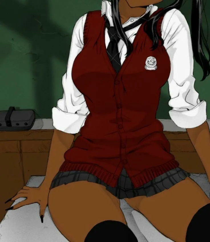 When the bell rang, signaling the end of the day, Kira slowly stood. Her hands moved to adjust her school vest, pulling down on the crimson fabric to tighten it over her body like a gift wrapper. Her shoes clicked against the floor, echoing in the now empty classroom as she approached her teacher standing patiently by his desk.