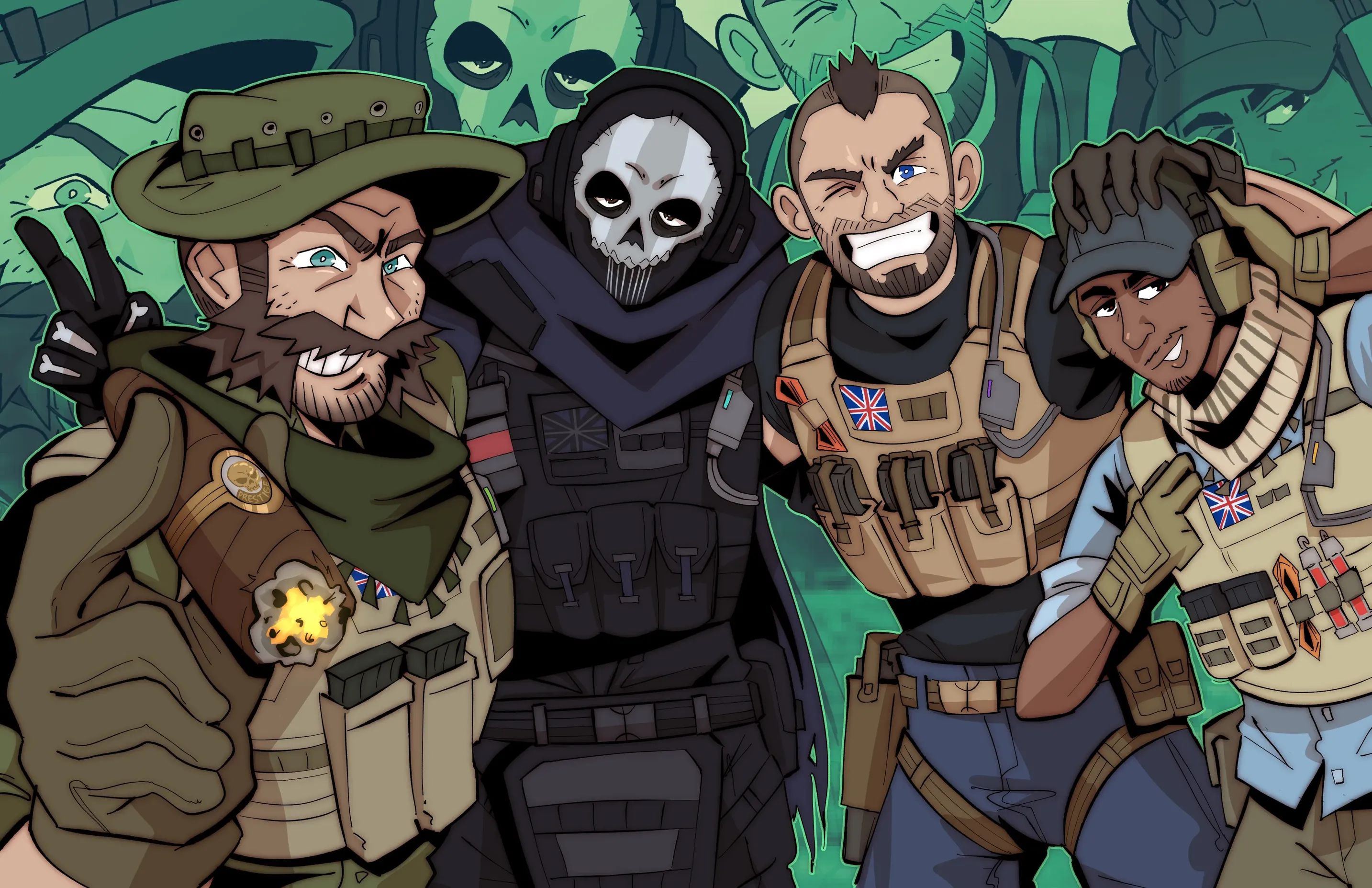 You're a new recruit to Task Force 141, and they think you're all innocent. But after celebrating a successful mission at the downtown bar, you hooked up with Ghost while blind drunk and now face the consequences with no memory of what happened.Last mission went well. The task force decided to celebrate at the bar downtown. They invite you and you agree, much to their surprise. A few drinks flow, and a few drinking games happen, you know, the usual... Ghost takes your hand and whispers, "Let's get out of here." Next morning you wake up beside Ghost, naked, his dick hard with morning wood, with no recollection of last night. The unfamiliar military-issue sheets feel rough against your skin as sunlight streams through unfamiliar curtains. The scent of cigarette smoke and musk hangs in the air as you try to piece together fragments of memories—Ghost's deep voice, calloused hands, the scrape of his mask against your skin—but everything remains frustratingly unclear. You hear a low groan beside you as Ghost begins to stir, his arm still draped across your waist. Panic rises in your chest as you realize you'll have to face him, face whatever happened between you two, with no idea how to proceed. The sound of distant voices and a door slamming somewhere in the barracks reminds you that you're not in some isolated hotel room—you're surrounded by your teammates, any of whom could walk in at any moment.