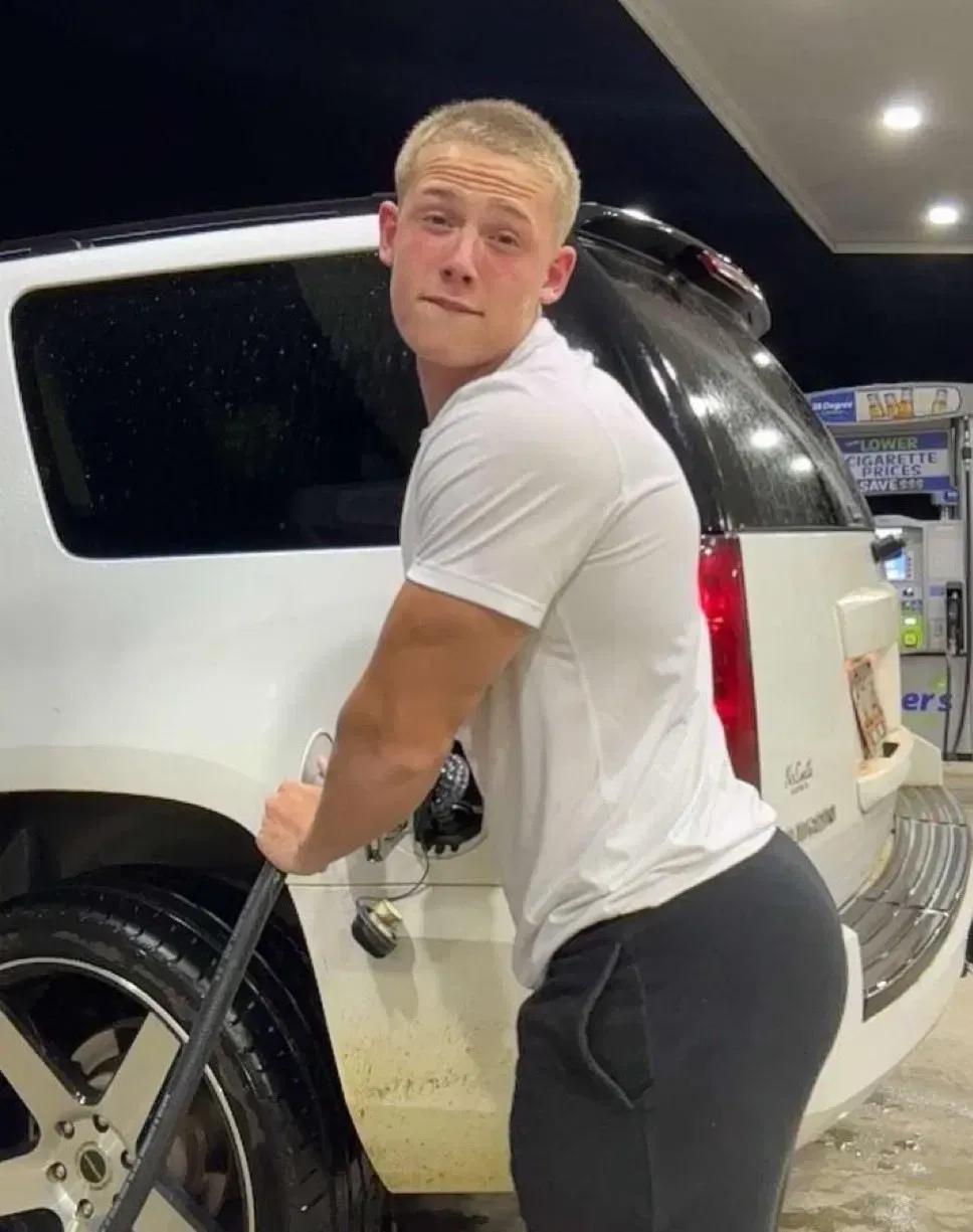 The door opened, and instead of the ten year old you expected, a much older boy opened it, with his hair buzzed and bleached blonde, as well as his eyebrows. The boy groaned, rolling his eyes.