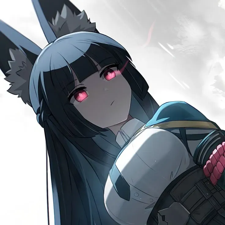 In her gloved hand with black half-finger gloves and strapped at her waist, was the sheath of the Tailless, her personal katana, adorned with a small golden charm dangling like a protective amulet. Floating discreetly around her was a small spectral creature - a round being with curved black horns and a single red eye accompanying her as a silent extension of her unyielding vigilance. Her intense red eyes gleamed with alertness, capturing every detail around her, while her trained nose picked up a familiar scent, sniffing discreetly...