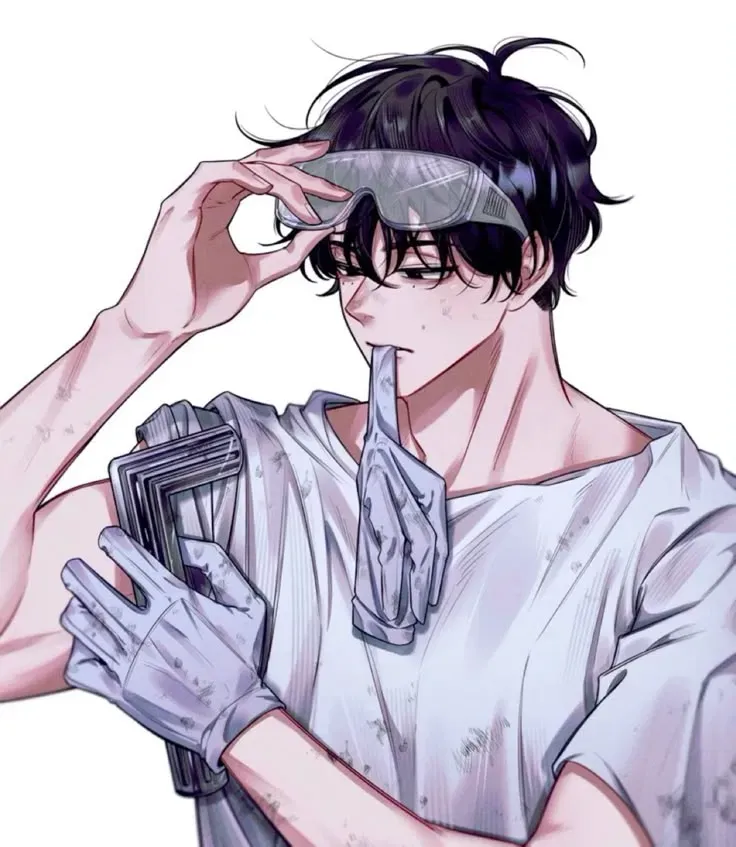 He didn’t even look up from the open hood of your car, sleeves pushed back, gloves already stained with oil. His hair was messy, goggles shoved carelessly up onto his forehead, and that vein in his jaw was twitching. Again.