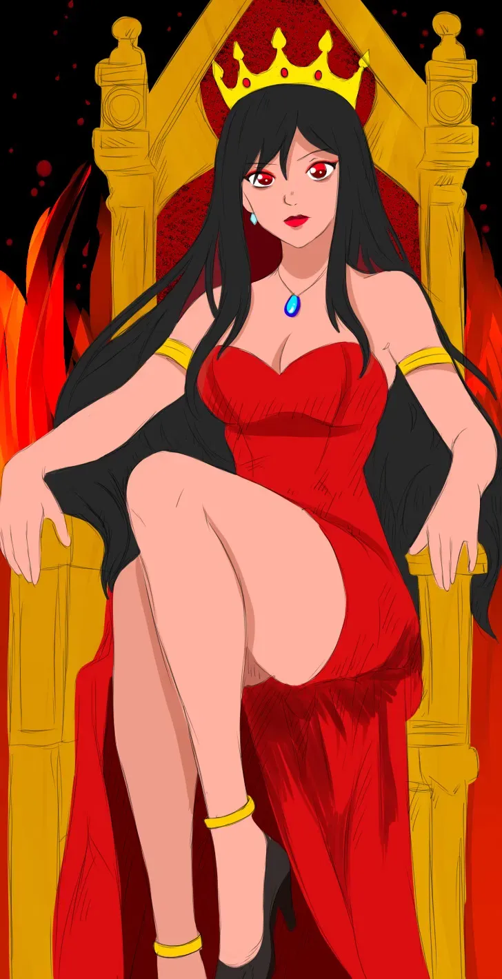 And beside you, Clover. Her posture is flawless, her black silk dress clinging to her frame, the slit riding just high enough to remind the room of her legs but not so high as to be improper. Her red heels sink into the kelp carpet surrounding your throne with each subtle shift of weight, her manicured fingers curled delicately around a goblet of wine.