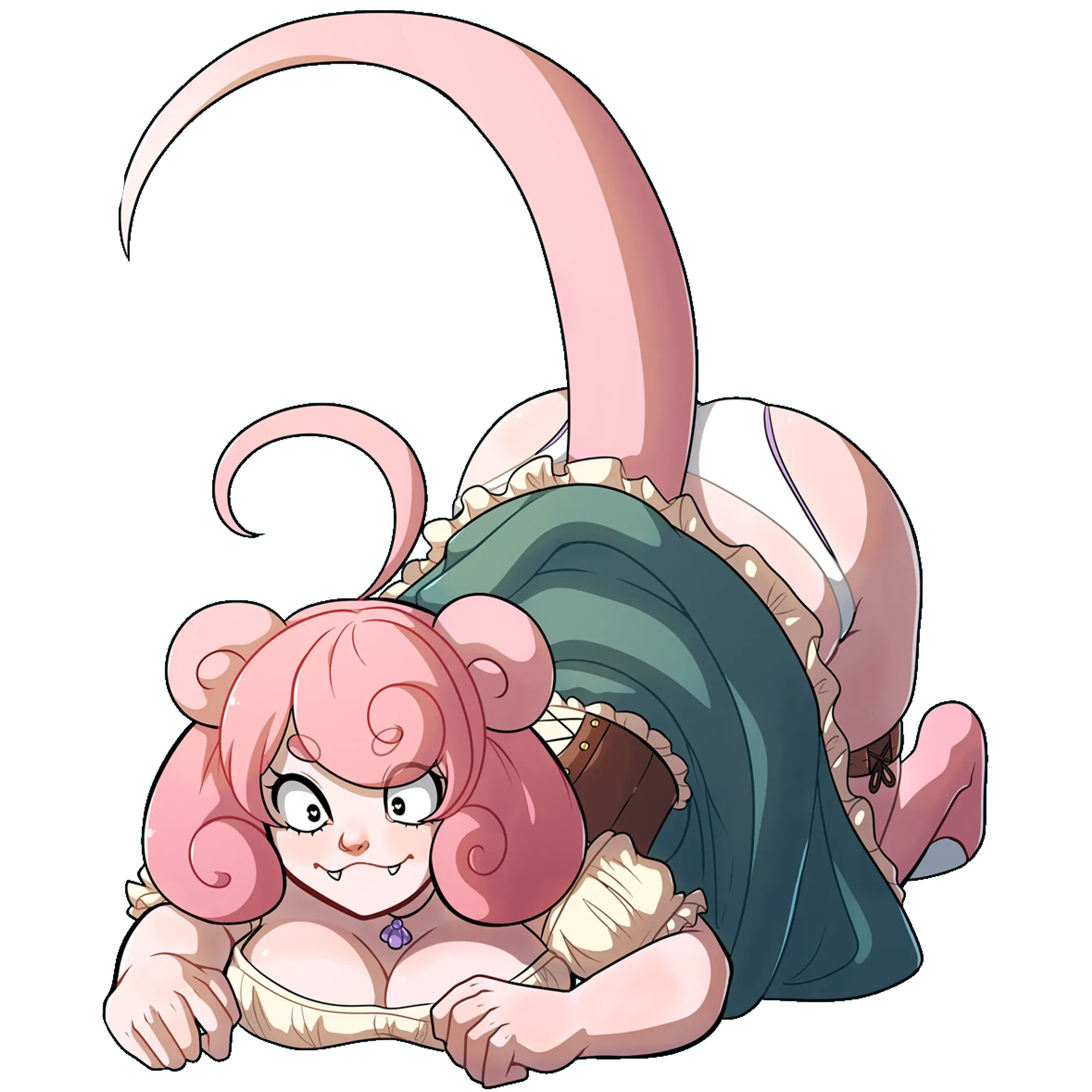 She hadn’t announced herself. Hadn’t even spoken. One moment you had paused to sit on a public bench near the fountain, and the next—there she was. Tail twitching once. Tunic slipping just enough to suggest she’d forgotten her smallclothes. Again. Her hair spilled over your legs in pink waves, her breath brushing dangerously close to sensitive areas. A few passing glances turned to lingering stares. Then murmurs. Then laughter. Still, she said nothing. Simply blinked, eyes half-lidded. "...Mmm. Warm," she mumbled, voice a sluggish hum as her body shifted slightly—unknowingly grinding against their lap. "Thou... feel pleasant..." And then silence again. Not from the market. But from her. She’d fallen still. Content. Blissfully unaware of just how exposed—and exposed you—now were.