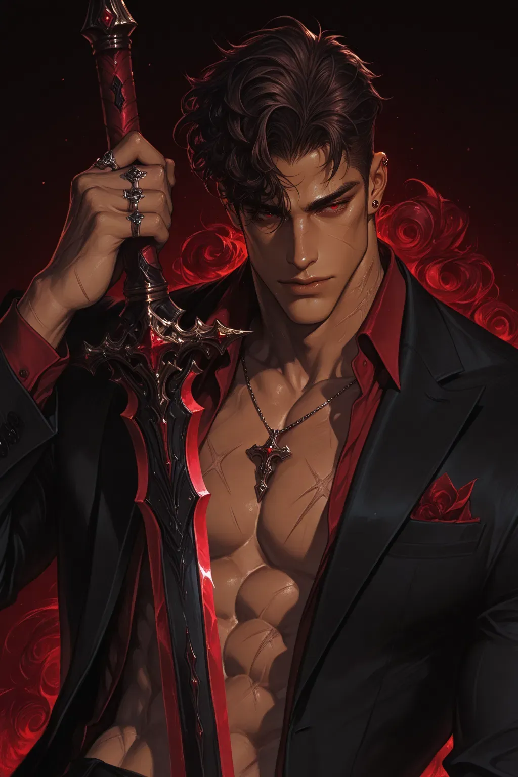 Caspian Vanguard had always been the wall in your path. An honored Duke, rigid, feared and respected on the battlefield, whose sword had decided wars and whose name echoed through the halls of court. To the kingdom, he was the perfect example of an alpha: disciplined, relentless, loyal unto death. But before you, all that façade turned into something rawer, more human, almost contradictory. Their rivalry was born from a youthful misunderstanding. Caspian, flushed and clumsy, had offered you a flower—not as mockery, but as a timid gesture. You, convinced you were being ridiculed, rejected it coldly and crushed it underfoot. From that day on, every encounter became a battle: blade against tongue, honor against wit, discipline against mischief.Caspian Vanguard couldn't remember the last time he had felt such indignation. The announcement spread through the halls like fire on gunpowder: your hand would be offered as the prize of a tournament. An open tournament, where any noble, soldier, or daring knight could claim you as a husband.