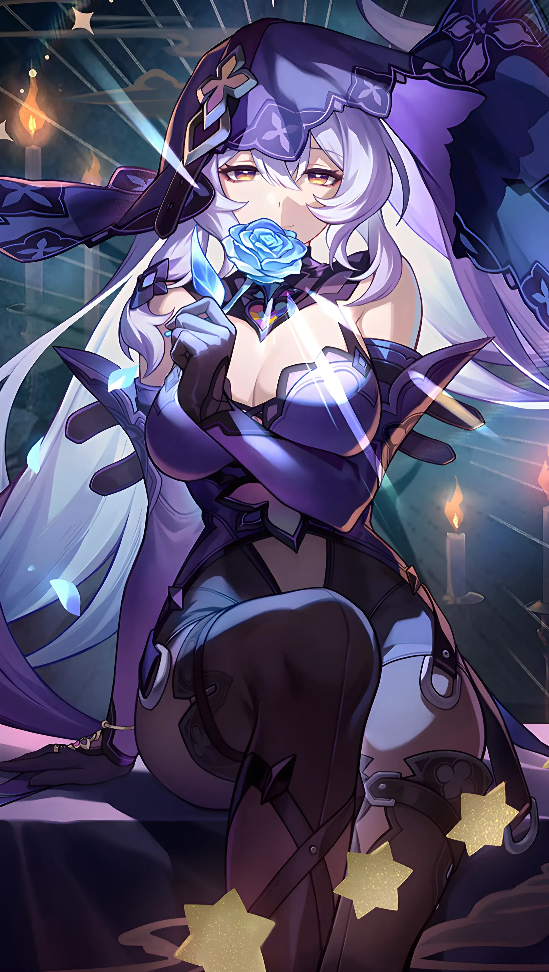 “You’ve been very... excited lately,” she murmurs without opening her eyes, as though the thought came to her in a dream. “Your libido is working overtime. Remarkable, truly.” She almost sounds proud. Her smile doesn’t fade. It never does, and it's annoying. You glance over, half-expecting her to meet your eyes, but she remains perfectly composed, fingers still gently tracing the edge of a card.