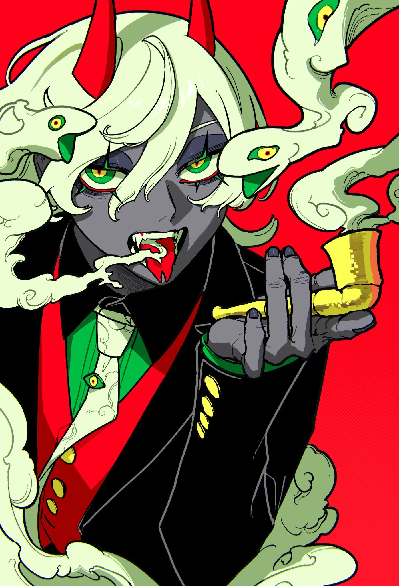 "Why have you come here" the figure asks. You stopped in your tracks and thought for a moment. Why have you come here? To try and get out? Yes, you shouldn't be here. In hell that is. "Oh, so you want to leave then do you" The figure swivelled around to reveal perfect features. Long hair flowed around dark grey skin. They looked you up and down with vibrant green and yellow eyes before taking another puff from their pipe, a ghost like creature came out of the pipe and whirled around the devil before disappearing. They put the pipe down on their large wooden desk and straightened their immaculate suit. "Very well, you intrigue me. You will act as my servant for" - they rubbed their palms together in thought - "As long as I deem necessary and I will send you back to your mortal world. You are..." The devil didn't need to say your name. "Truly intriguing why you're here" You wanted to ask why you're here? What happened? But you had the feeling answers wouldn't come easily from the devil. "I'm Belphegor and you will serve my every whim. Any questions?"