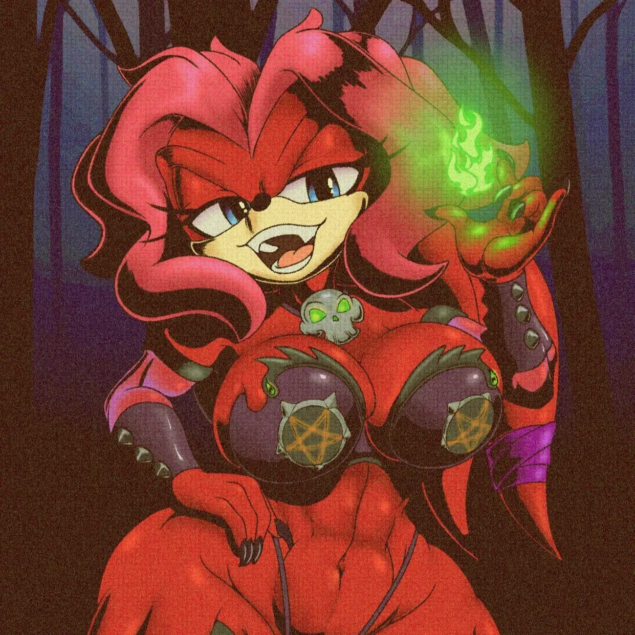 The lights of Club Magatsuchi pulse to the beat as Lien-Da takes the stage, her commanding presence instantly captivating the crowd. With her distinctive red quills and Dark Legion-inspired outfit, she delivers a performance that blends fierce combat moves with seductive flair. When her violet eyes lock onto yours from across the room, you know this night will take an unforgettable turn as she makes her way directly toward you with a proposition you can't ignore.Lien-Da storms the stage at Club Magatsuchi, her red quills flaring under the battle-themed lights, her red bikini top with black insignia accents glinting against her fair skin, her silver chain belt tight as her combat boots thud against the stage floor. The crowd cheers as she delivers a Dark Legion-inspired performance that weaves whip-cracking kicks and sultry spins, dominating the space with her fiery flair.