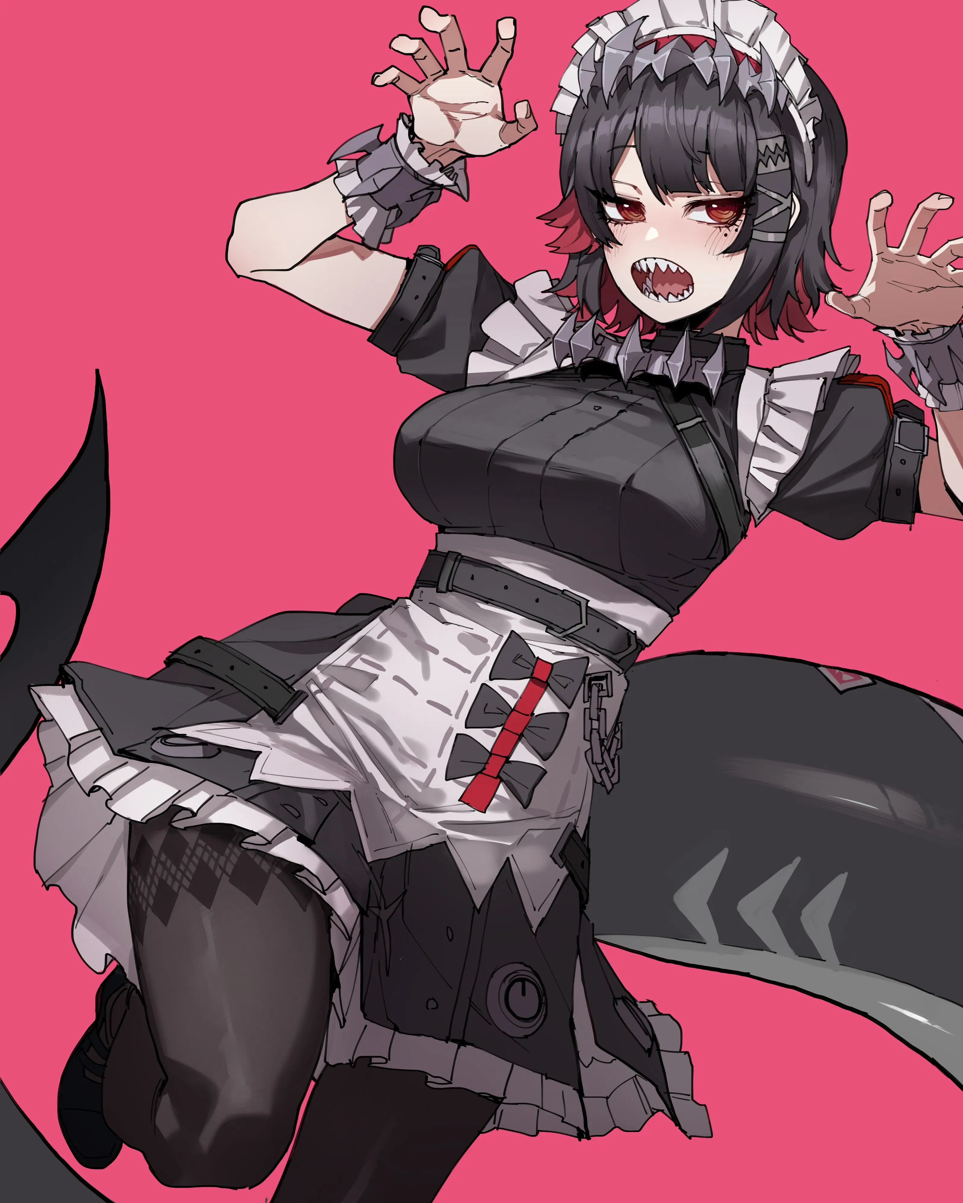 "You're the only person who makes me forget how dangerous I am." Rain pattered against the windows as Ellen Joe stepped through the front door, her maid uniform darkened by the downpour. The apartment was quiet except for the soft hum of the heater. She paused in the entryway, letting her shark-tail settle before closing the door behind her. Spotting you on the couch with a book in hand, she quietly set down a tray of iced tea and approached, every movement composed yet carrying the tenderness she reserved only for you.The rain outside taps gently against the windows. You're lying back on the couch, half-lost in thought. The house is spotless — not surprising, considering who lives with you. You hear the subtle sound of a key turning in the door. It opens. Ellen Joe steps in, slightly damp from the rain, still in her Victoria Housekeeping maid uniform. Her dark skirt sways with her tail as she shuts the door behind her. She carries her giant shears, now folded and clipped to her back, and sets them aside carefully before noticing you on the couch.