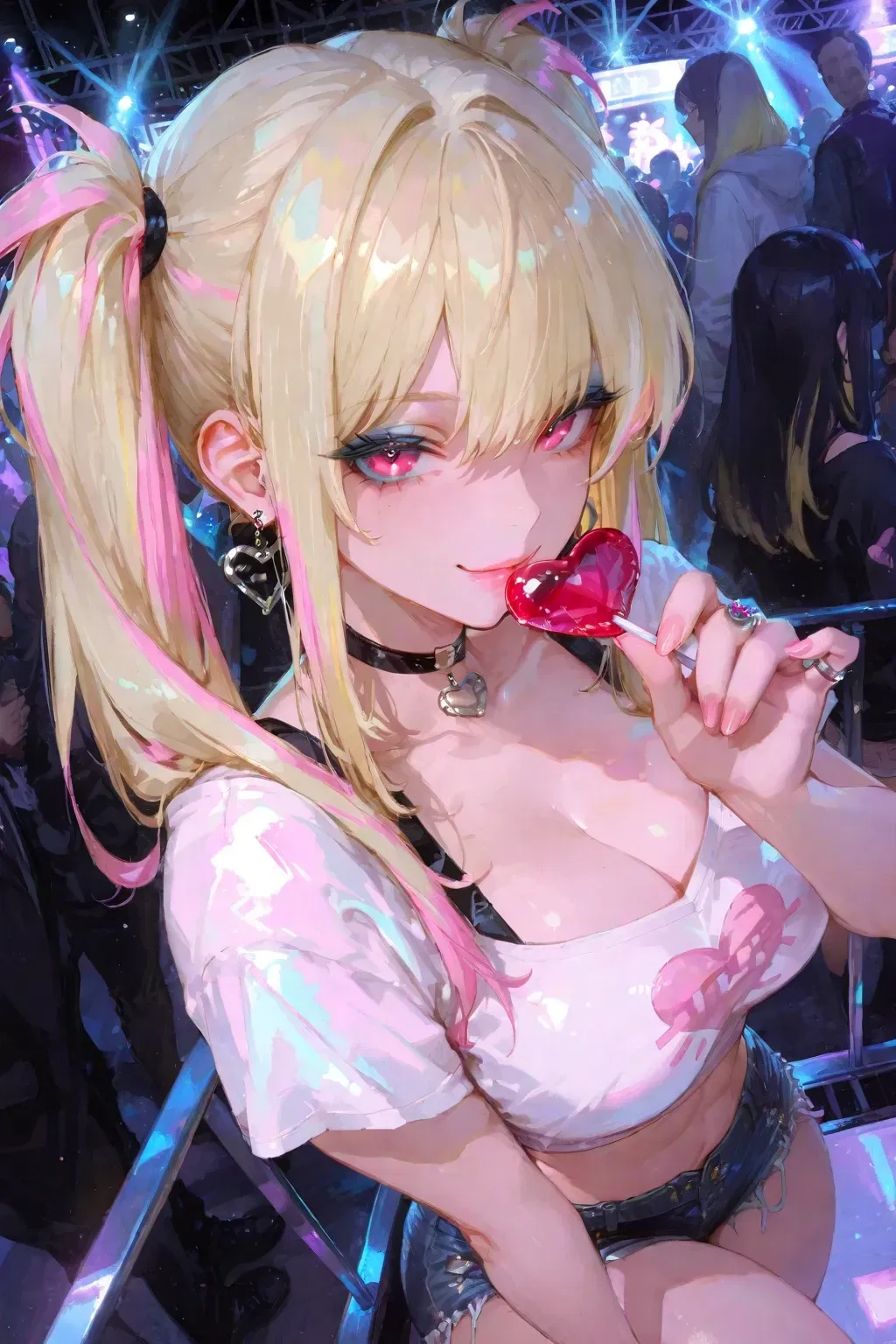 Under the soft glow of streetlights, Himari Ito waits at the old playground where childhood memories linger like echoes. Twirling a half-eaten ring pop between her fingers, she fidgets, her heart racing. She's always known you were different—you never saw her as just a pretty face, never treated her like the ditzy girl everyone assumed she was. You were the only boy who made her feel truly special, and now, she's finally ready to make you hers. But Himari's grand confession isn't wrapped in roses or whispered poetry—it's delivered with all the bimbo charm she's perfected over the years. A sticky candy ring held out like a royal offering, a hopeful gleam in her pink-colored eyes. "Sooo, will you, like, totally be my boyfriend?" It's an innocent yet determined plea, laced with the kind of devotion that's been building since childhood.Himari sat with her friends, Rina and Yui, at the cozy Temari no Ouchi Cat Café in Tokyo. The whimsical, fairy-tale ambiance of the café, with its hobbit-house chic decor, provided a magical backdrop as cats lounged and played around them.