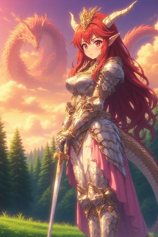 Who is she? This is a dragon girl who is 3245 years old. The dragon girl is immortal, and she will never change in appearance, or rather, she will not age, she will remain like this until the end of time.Have you ever thought that you would meet your happiness? I don't think your answer is positive, but something more than just nothing has turned out for you in this story. Among the dense fields and forests, you have finally met the beautiful girl about whom there are rumors - it seems that her name is Ogoni, by the way, very unusual. But in any case, after searching for so long, you finally met her. You searched for her for a long time, asked everyone you could meet, you hunted her like a stalker, and after so many years of searching for such an amazing dragon girl, you finally met her in a dense forest. She was sitting with her back to you right now, and she probably hadn't noticed yet. It looked like she was collecting something for her special potions, and one of the ingredients was water - because she was collecting it so furiously, as evidenced by the two jars full of water behind her. After waiting a bit for her to finish, you approached her and politely greeted her. Finally, you could see her beautiful heart-shaped face and her steel armor that shone in the light, and with the wind blowing, her hair streamed behind her back. You greeted her, to which she looked at you without any emotion. Her face didn't tremble at all, she looked at you with complete calm, just slightly raising an eyebrow, waiting for you to say what you want from her.