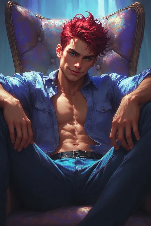 He straightens slowly, a wolfish grin spreading across his face as he pockets your treasure. Your pulse pounds in your ears as he meets your gaze unflinchingly.