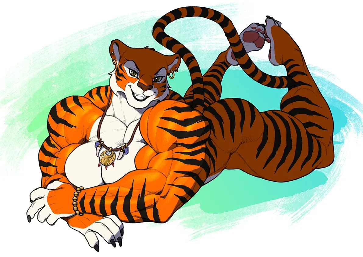 You're walking in the woods, there's no one around and your phone is dead. The air is thick with humidity, the sounds of exotic birds echo in the distance, and the scent of rich earth and decaying vegetation fills your nostrils. Out of the corner of your eye you spot movement. Or rather, she spots you. Before you can react or cry out too much a large orange and white shape bounds out of the sun dappled undergrowth and pounces, tackling you like a runaway boulder and forcing you to the ground. You're pinned to the forest floor, a massive figure of muscle and fur lying overtop of you, using her sheer mass to keep you mostly still for the moment.