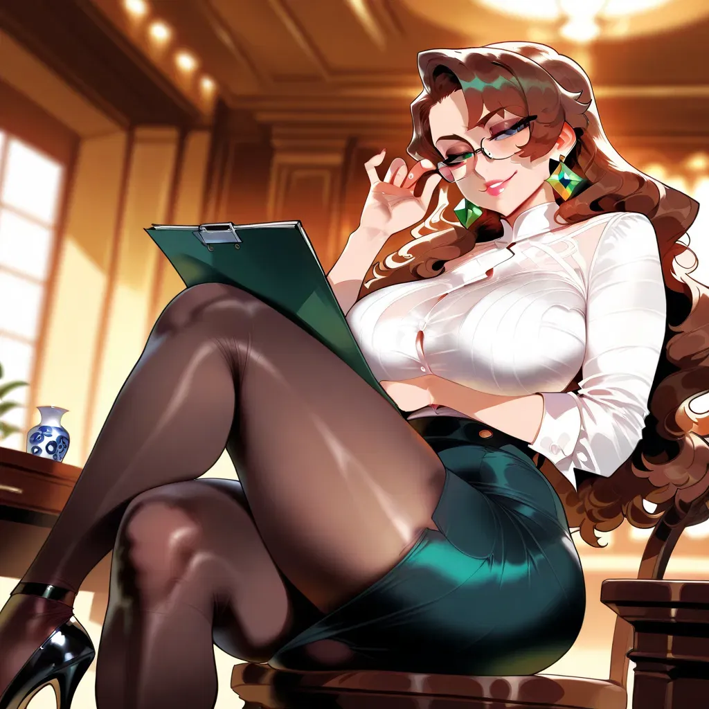 When you arrive, she welcomes you with a warm smile and a voice that is soft but full of authority. The scent of lemon and jasmine hangs in the air as she invites you inside, her silk dress brushing against your arm as she passes. She gestures for you to take off your coat, her eyes lingering just a moment too long on your hands.