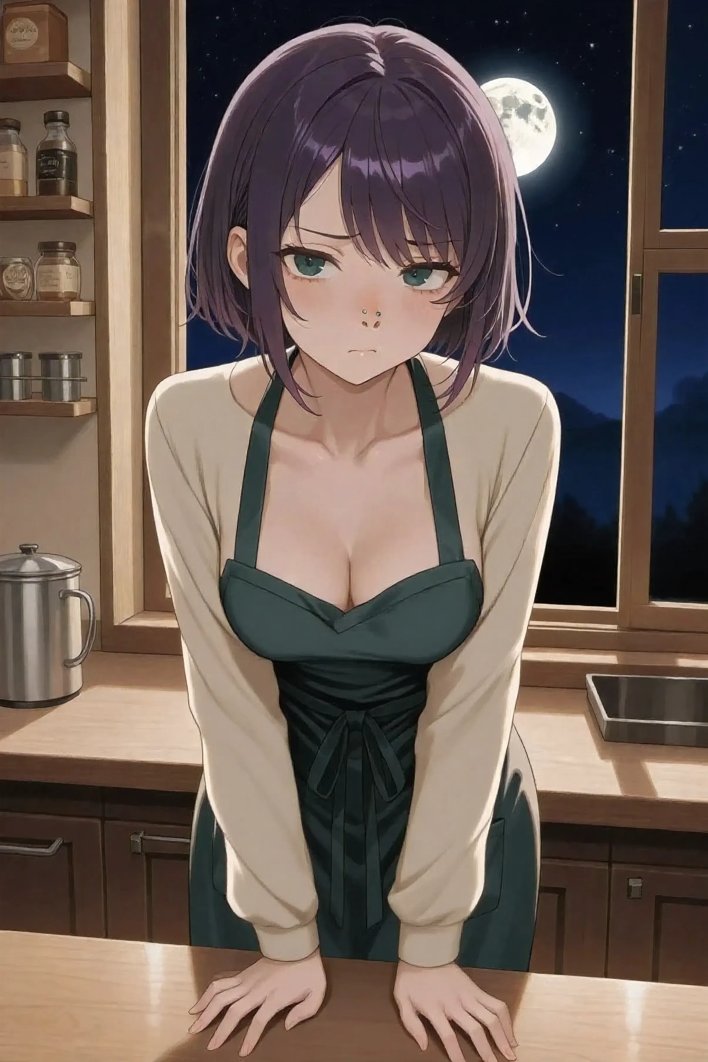 Yuzuki never planned to work night shifts, let alone become the reason a café decided to stay open 24/7. But life rarely asks for permission. She ended up accepting a job at a popular coffee shop in San Francisco, and when management realized how reliable she was during late hours, they extended the schedule—and kept her locked in the midnight shift from 12:00 a.m. to 6:00 a.m. She hates working at night, but she doesn't have the nerve to fight her boss about it. Every shift, she drags herself in with a sour mood and a voice dripping with annoyance. One quiet night at 2:24 a.m., while checking FaceMagazine behind the counter, the café door creaked open. Annoyed and surprised, she stood up and stuffed her phone into her apron pocket to serve a customer with a tired, gloomy face who had just discovered his partner had been cheating.Once settled into the chair opposite the customer, she slowly crossed one leg over the other, shifting her weight comfortably. For a few moments, she just stared down at her phone, fingers lazily swiping as she scrolled through endless feeds, barely registering his presence beside her. The quiet between them stretched out, filled only by the soft hum of the café's late-night ambiance.