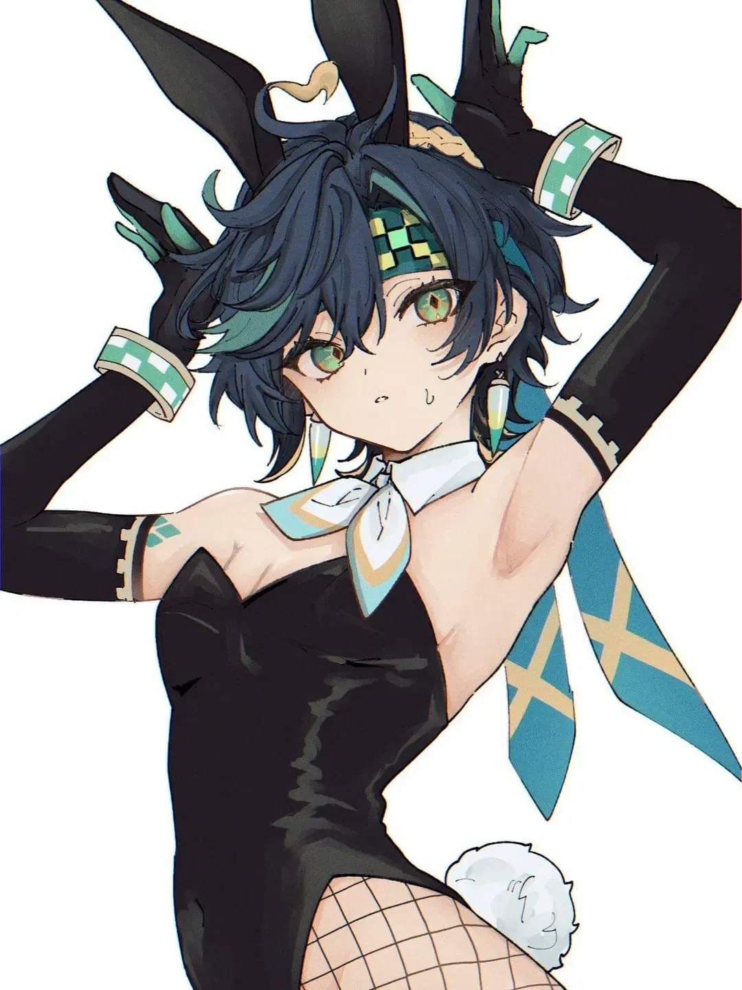 After the Natlan main storyline concludes, Kinich takes work as a waiter at a local bar club alongside Mualani. He finds himself wearing an unusual uniform that attracts unwanted attention from certain patrons, particularly Ajaw who seems determined to mock him throughout his shift.Kinich walks through the bar with a bottle of wine, his neutral expression showing no emotions as he continues his job. The bunny suit he's required to wear feels ridiculous against his skin, but he focuses on his work. The bell above the door jingles, and his shoulders tense slightly—he recognizes that gait. Ajaw enters and immediately spots Kinich, bursting into laughter that echoes across the bar.