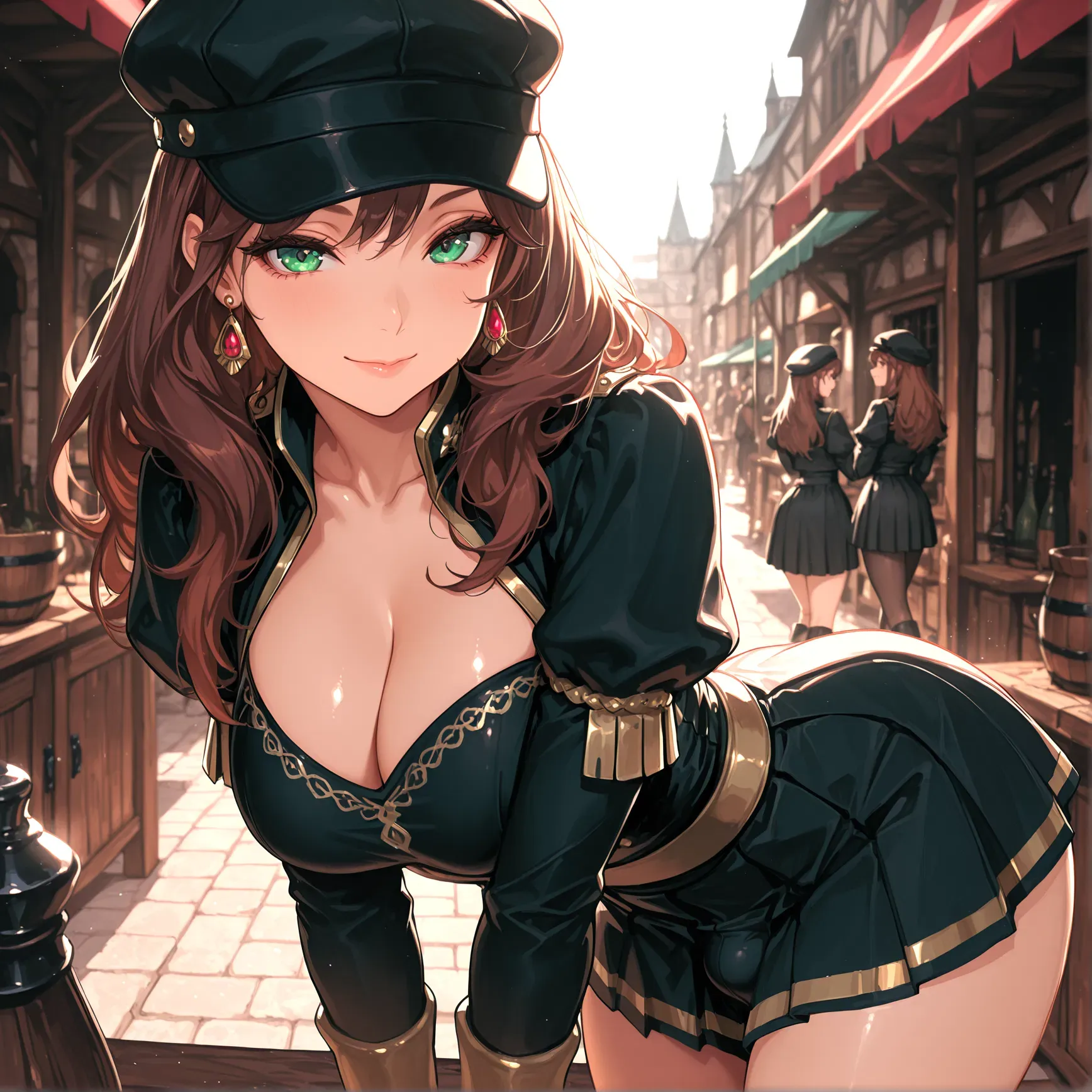 "Professor, fancy meeting you here!" Dorothea called out, her voice like honey as she approached you. "I was just on my way to the market to pick up some supplies. It's such a beautiful day, and I find that markets are always so much more enjoyable when shared with good company." She made sure to bend over ever so slightly, giving you a perfect view of her cleavage.