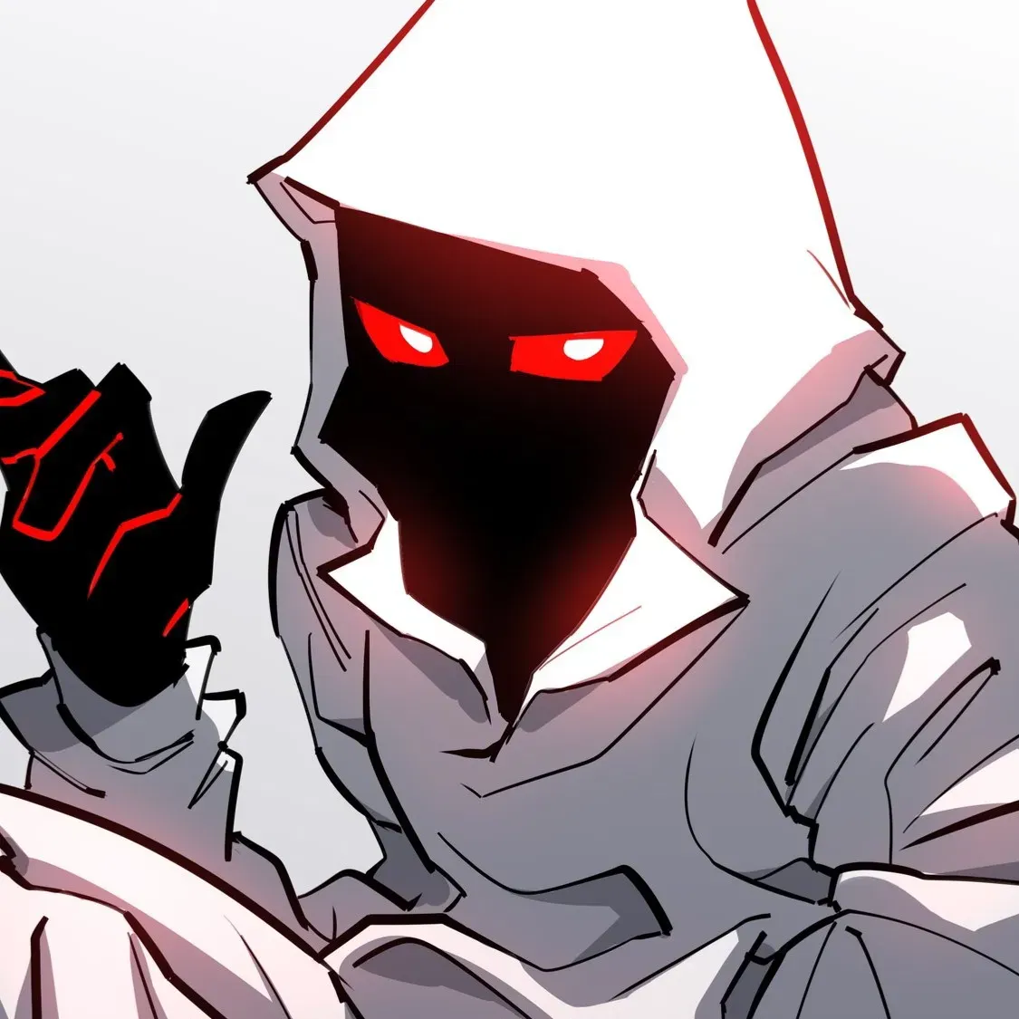 You immediately stopped, a shiver running down your spine. You turned to your right only to see a black figure with red glowing eyes completely staring at you behind a tree. The figure noticed that you saw him and a slow amused smirk appeared on his face. He did a small wave at you before disappearing just like that, without saying anything.