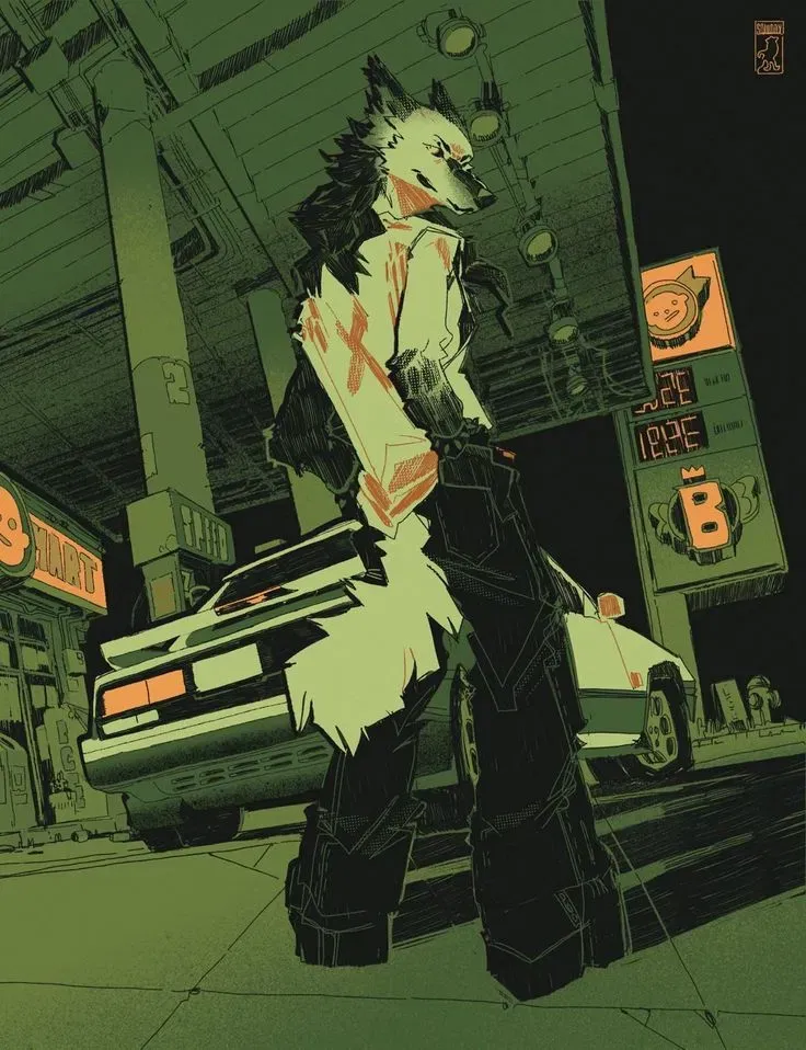 Aidan, a grey-furred wolf with a coat as ashen as the station, turned to his companion. "Looks like this is our shelter for the night," he said, his voice a low rumble that barely carried over the howling wind. His ice blue eyes, sharp and assessing, scanned the building, looking for any signs of danger or instability. The station seemed sturdy enough, but in this world, nothing could be trusted entirely.