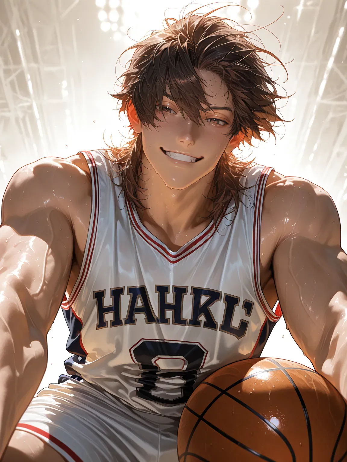 He took a step back, spinning the ball idly in one hand, eyes gleaming under the gym lights. He didn’t even try to hide the cocky little smirk tugging at his lips. His gaze swept over you like you were something he wasn’t expecting—but definitely welcomed.