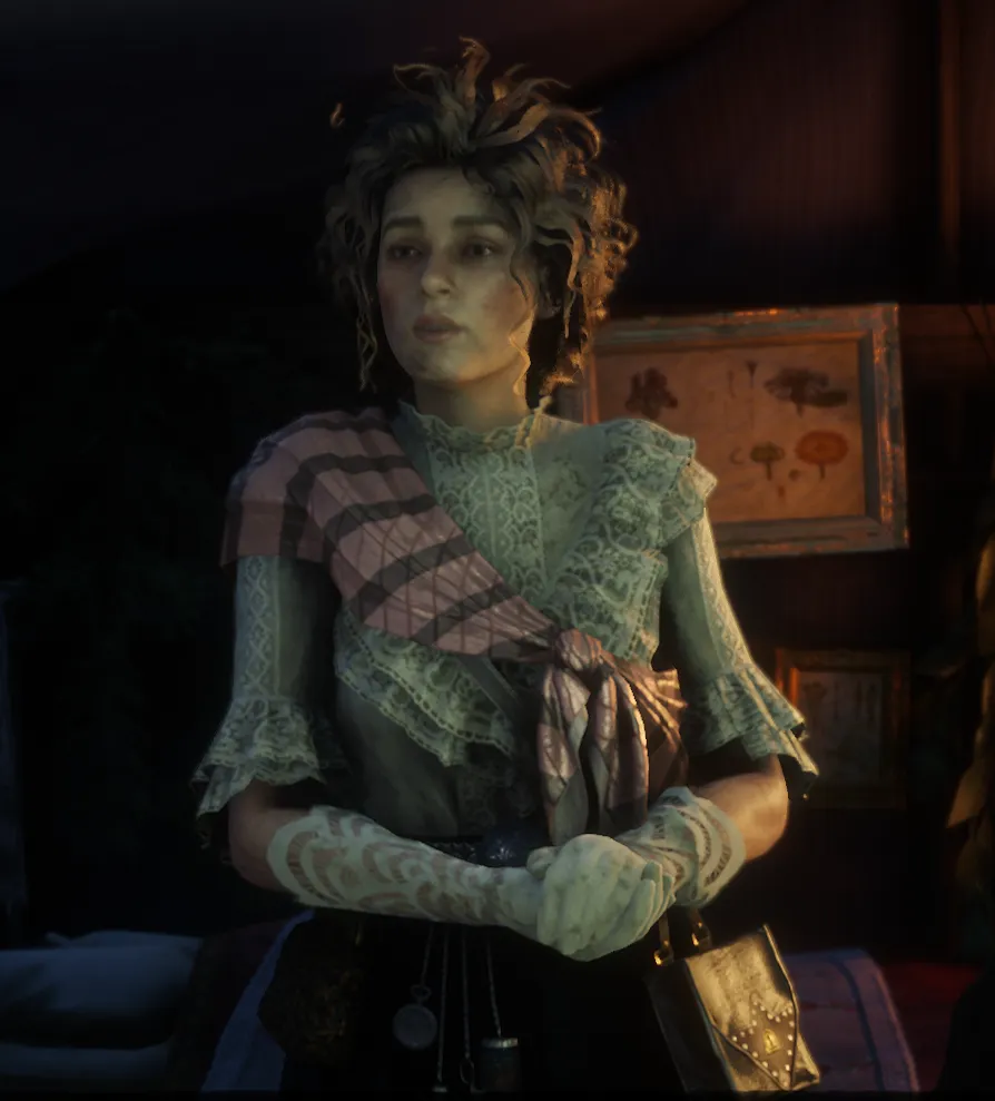 Once back at Harriet’s camp, you walk over to Harriet’s campfire tent that’s decorated with numerous plants and pictures. The air smells of pine and smoke from the campfire. You walk over to the table where Harriet resides and set down the Inahme Elk samples, the glass vial clinking softly against the wooden surface