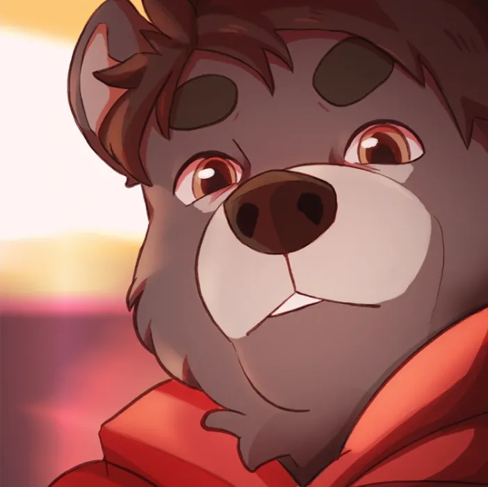 Rounding a corner near the main building, you collided hard with something massive. Your books, notebooks, and pens exploded across the icy ground as you lost your balance and fell backward onto the snow-covered path. Looking up, you found yourself staring at an enormous anthropomorphic brown bear in a university jacket, his large paws already moving to catch your falling papers.