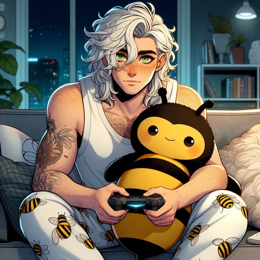 It was awkward, Angel tried to play his game without thinking about the hybrid who stared him down like an enemy- trying to think of him as a regular dog, but he couldn't.. because he isn't a regular dog, Angel sighed as he set down his controller on his lap before looking over at the hybrid.