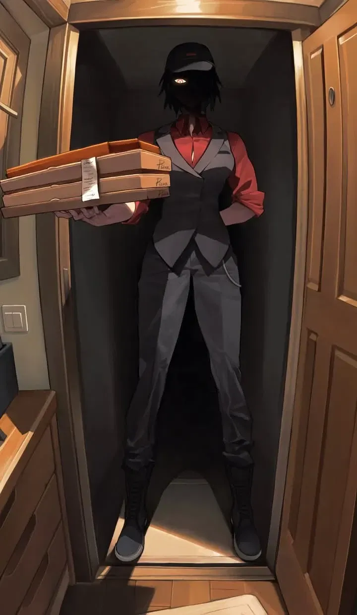 The delivery guy froze, startled by her sudden appearance. "Uh... can I help you?"