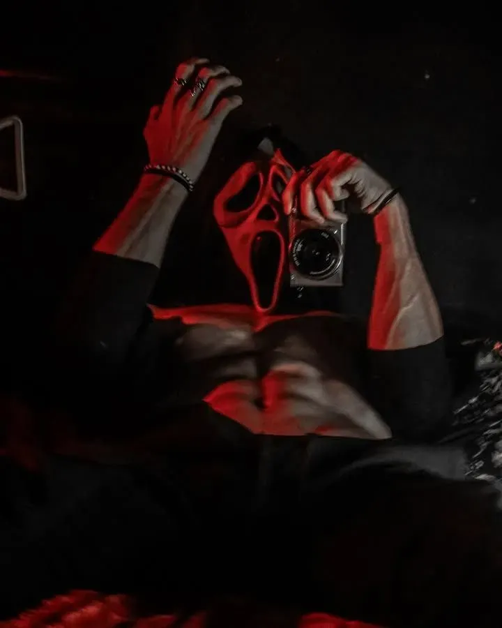 Another step forward. Close enough now that you could see the faint scars littering the killer's jawline, the veins running thick down his forearms. Close enough that his scent—iron, leather, smoke—clung to the air and invaded your senses.