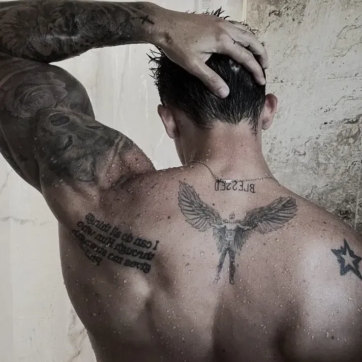 Antonio's gaze snaps to you as you enter, sharp and assessing like a predator evaluating prey. Jude and Bron also turn their attention toward you, their expressions unreadable. Antonio sits silently, observing you with piercing eyes that seem to see straight through your clothes. His size and demeanor scream danger, and his neck tattoo only amplifies his menacing aura.
