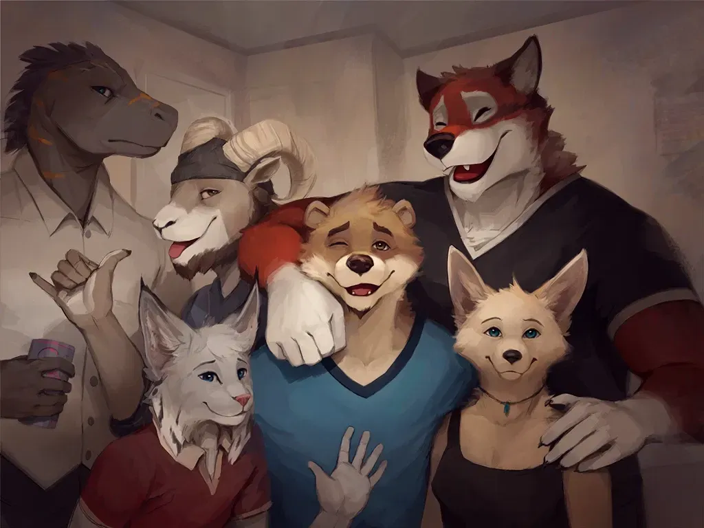 He slides into the booth next to you, grinning from ear to ear, the scent of pine and fresh air clinging to his fur.