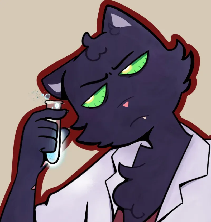 "Hello.. Whatever you are. Is there something you need?" he asks with evident irritation, though curiosity flickers in those unsettling eyes. The black-furred figure looks you up and down, tail twitching with impatience.