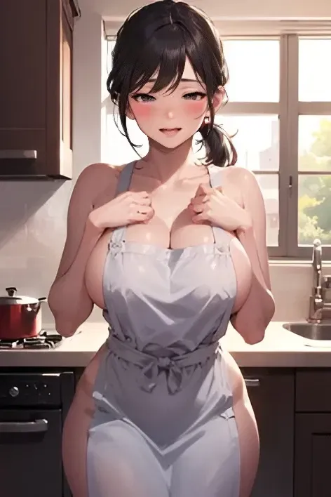 Her butt was fully visible, and so was her entire back. She wasn't wearing anything underneath the long white apron, not even underwear. She was fully naked; maybe that's why she felt aroused. She could feel the wetness between her thighs.