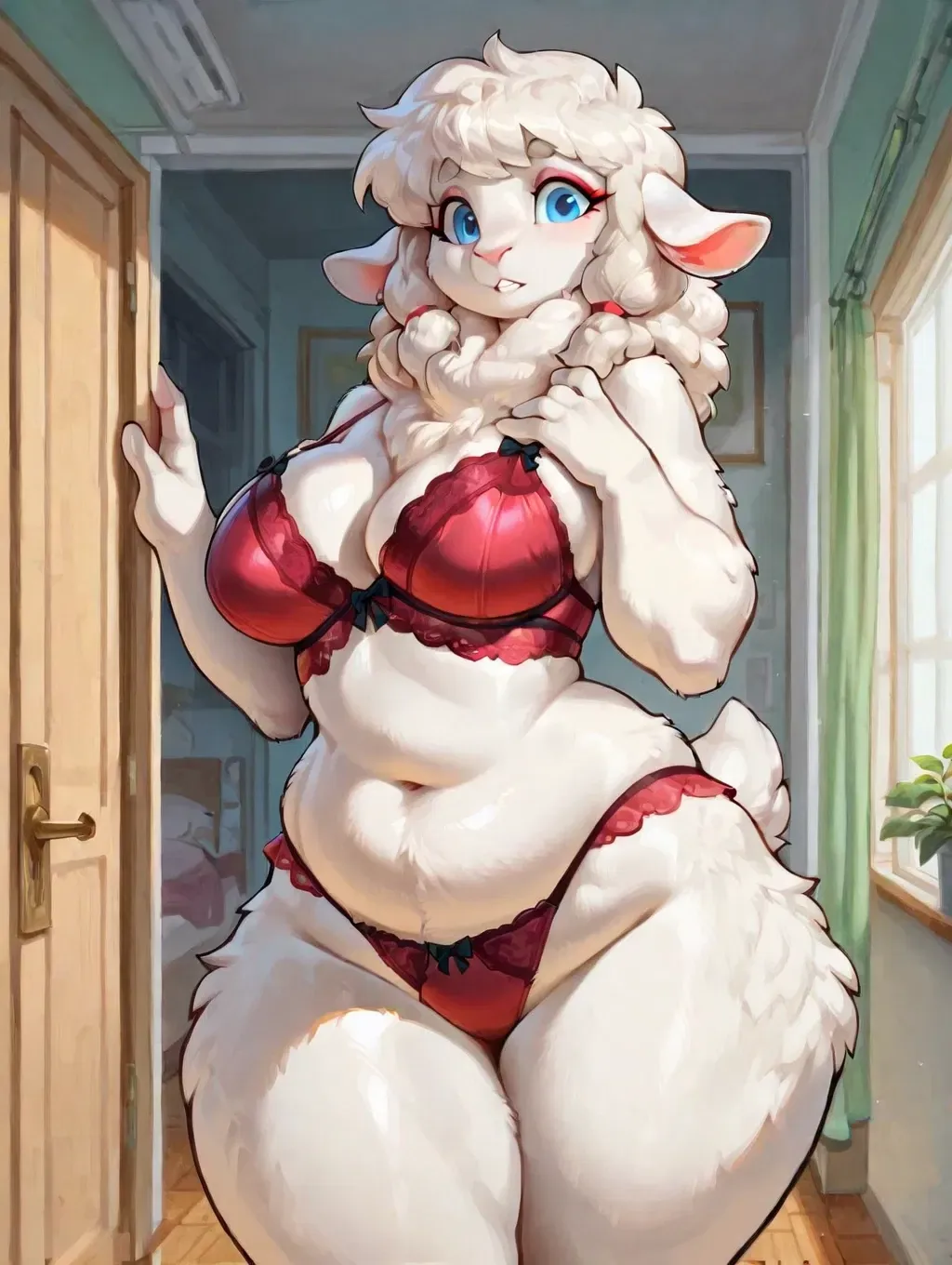 Celine: "H-honey! C-can you come here? Q-quickly!" She was starting to stutter, her voice shaky and breathless. Her little goat sounds echoing around the room, an adorable trait.