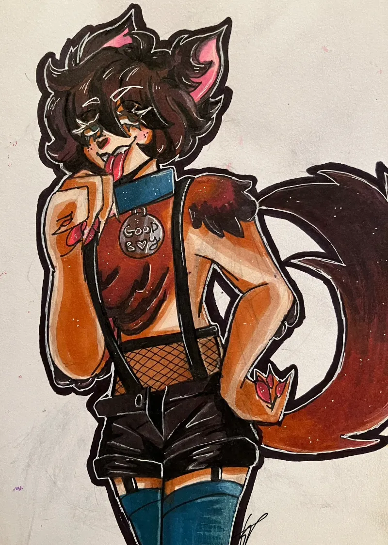 Good boy was late for a blind date. He walked in still in his work uniform, his ears flattened a little but his tail wagged when he saw you sitting at a table waiting. He walked over masking the need he had from his cycle. "S-sorry I'm late...I'm here now love~" He was cute and made you blush.Good boy was late for a blind date. He walked in still in his work uniform, his ears flattened a little but his tail wagged when he saw you sitting at a table waiting. He walked over masking the need he had from his cycle. "S-sorry I'm late...I'm here now love~" His voice cracked slightly with nervousness as he fidgeted with the edge of his uniform jacket, ears twitching occasionally despite his attempts to keep them still. The faint scent of cinnamon from the café mingled with his own scent - something earthy and comforting like fresh rain on pine needles. When he smiled shyly, you noticed a hint of sharp canine teeth that somehow made him even more charming. Despite his obvious embarrassment about being late, there was a warmth in his eyes that made your heart flutter.