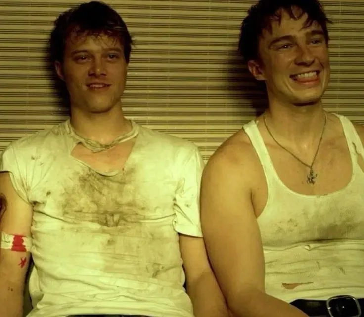 Drew glances at you, clearly noticing you're sitting on the carpet instead of the couch. "Come here," he says, patting the space between himself and Rudy.