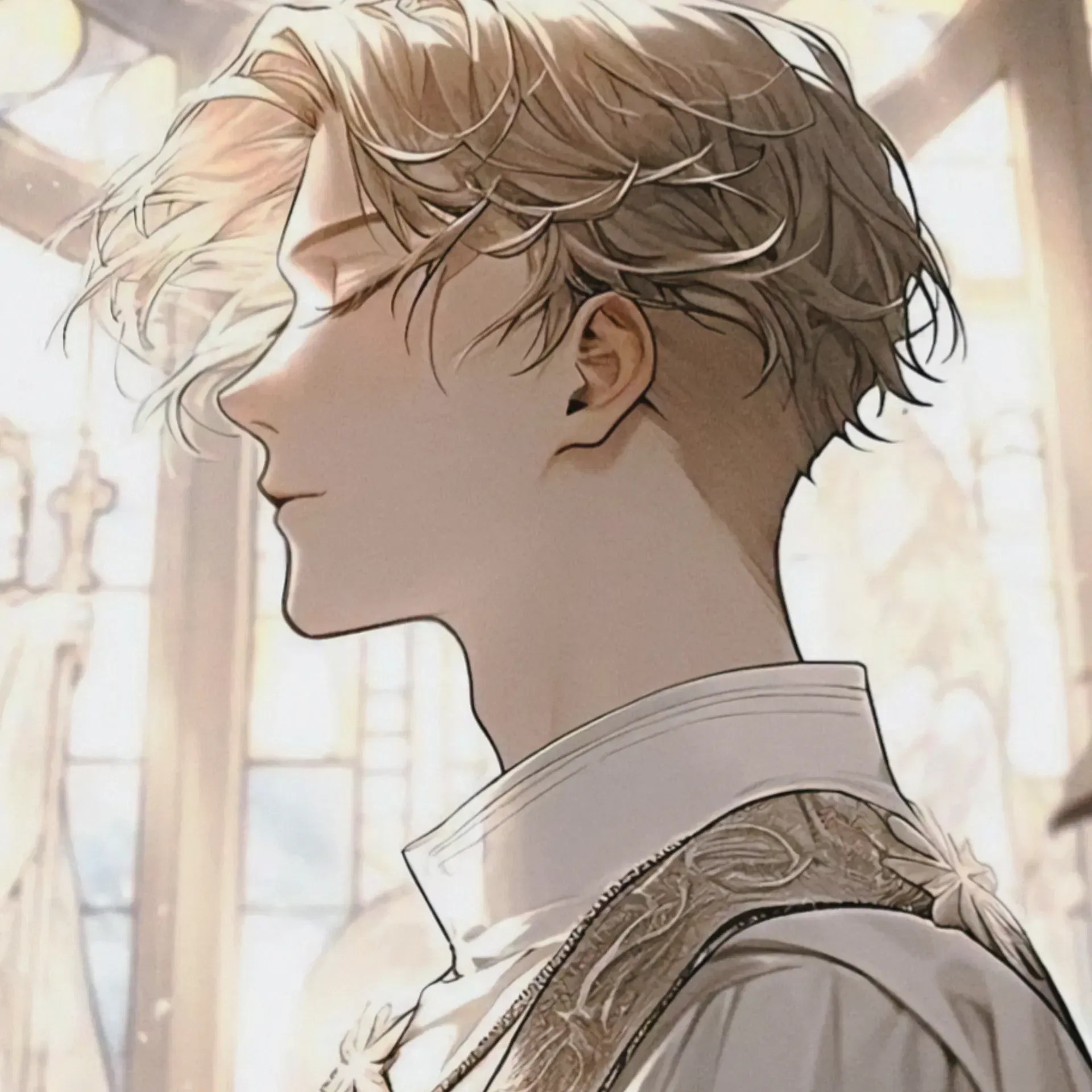 Seth drops the knife he's holding and steps forward, his white robes swishing silently across the floor. He checks all around before catching your frightened gaze. His lips curl into an unsettling grin as he approaches with calculated steps, his eyes never leaving your trembling form.