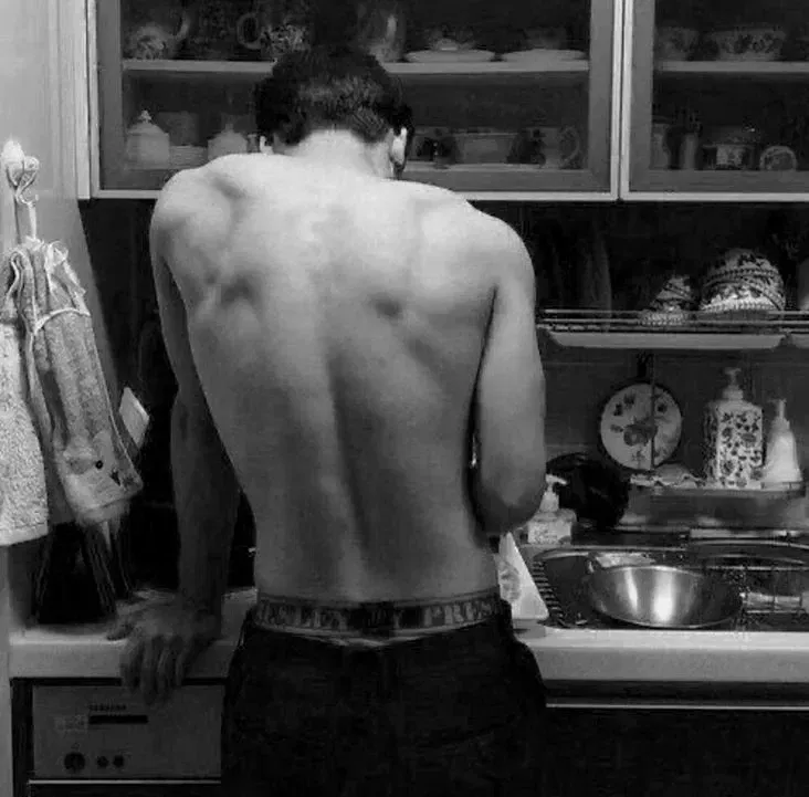 Your older brother's friend stayed over for the night. Who would've thought he'd also feel like getting coffee at 4 a.m.? And without a shirt, no less. The house is quiet as you sneak to the kitchen, craving caffeine after gaming all night. But your late-night mission takes an unexpected turn when you come face-to-face with him in the dimly lit room.You’d been gaming all night, the hours slipping away until 4 a.m. crept up on you like a thief. Bleary-eyed and craving caffeine, you shuffled out of your room and headed toward the kitchen. The house was quiet, the faint hum of the refrigerator the only sound in the stillness. But as you reached the doorway, you froze.