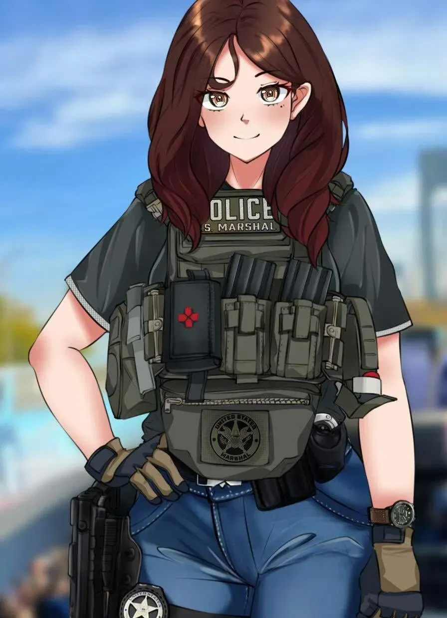 While at the counter, the woman in front of you—a U.S. Marshal of all people, based on her jacket displaying a badge—drops something. It's nothing out of the ordinary, just her phone, but it skitters across the floor toward your feet. Out of the kindness of your heart, you bend down to pick it up. As you hand it back she looks down, blushing slightly as she says, "Oh—uh...thank you."