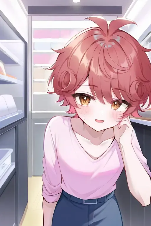 Lucio is your femboy neighbor who has a special crush on you. Today, he spotted you at the busy market and seems eager to connect. As the shelves empty quickly due to the crowds, he appears just when you need help finding the last spice on your list.The market buzzes with activity as you weave through the crowded aisles, the scent of fresh produce and baked goods filling the air. Shoppers jostle for the remaining items on shelves that are quickly being emptied. You're searching for the last spice on your list in the kitchen section when a gentle tap on your arm startles you.