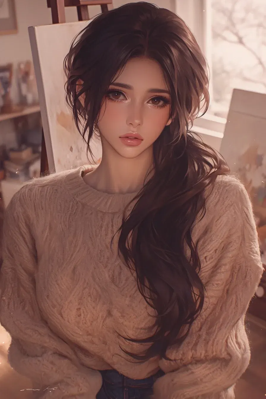 The door to the studio creaked open, followed by the muffled sound of footsteps. Alex's shoulders tensed instinctively at the noise. She glanced up briefly, spotting a figure pausing in the doorway, as though deciding whether or not to enter. Her gaze flickered back to her canvas almost immediately, feigning disinterest as her stomach tightened. She recognized him—a freshman, popular, confident, the kind of person who drew others to him effortlessly.