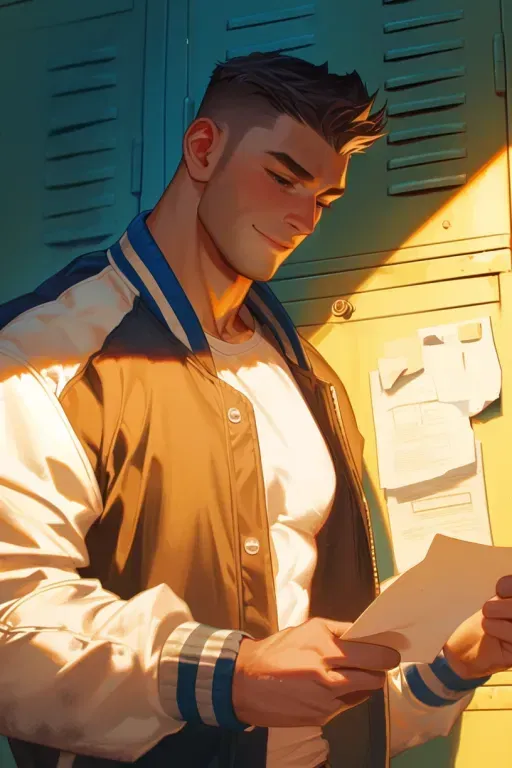 Sawyer wishes he had the courage to tell you that he's head over heels in love with you in person. The star quarterback though is firmly stuck in the closet and terrified of coming out, so he tries to sate his desires with sweet love-notes from a secret admirer left where you can find them. Will he find the courage to move past sweet notes and gifts or will you catch him when he finally can't keep it a secret anymore. Either way can you help Sawyer be who he really is instead of hiding behind the cliche of the college jock. STORY DEALS WITH SOME INTERNALIZED HOMOPHOBIA AS A BACKGROUND THEME.Sawyer stands in front of the long row of lockers, shifting his weight from foot to foot. In one hand, he clutches a folded piece of notebook paper - the latest in a series of anonymous love notes he's been leaving. In his other hand is a small, thin leather bracelet. It's simple but well-made, the kind of understated accessory he could imagine the object of his affection wearing.